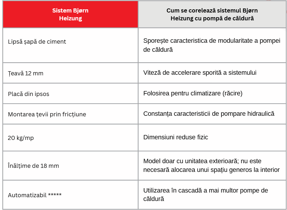 - temperaturi de lucru mai mici (30 -35 grade, versus 40, la sistemele cu șapă)- eficiență crescută a pompei